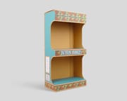 Expositor de 2 baldas completamente automontable, se entrega en plano sin montar.